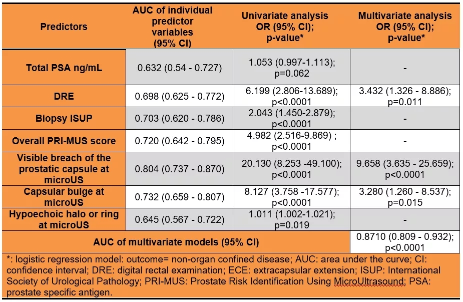 表3. mUS预测非器官局限性前列腺癌的危险因素