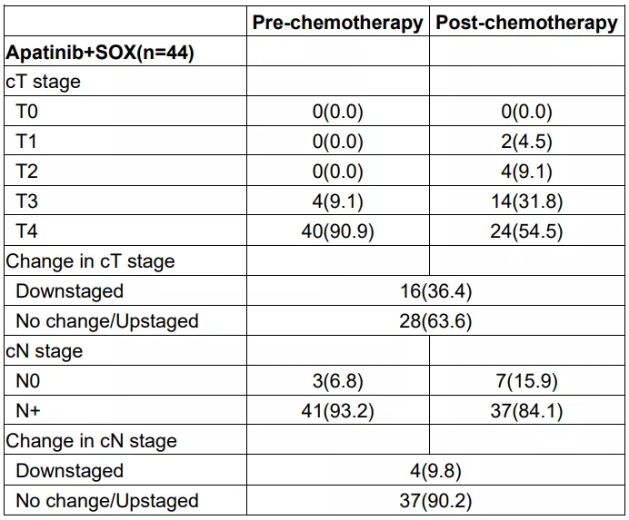 表1. 新辅助治疗后的肿瘤降期