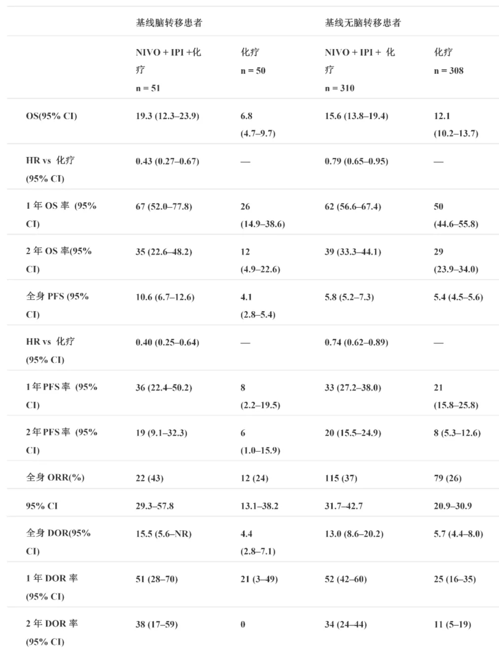表. CheckMate 9LA不同基线脑转移状态患者的疗效