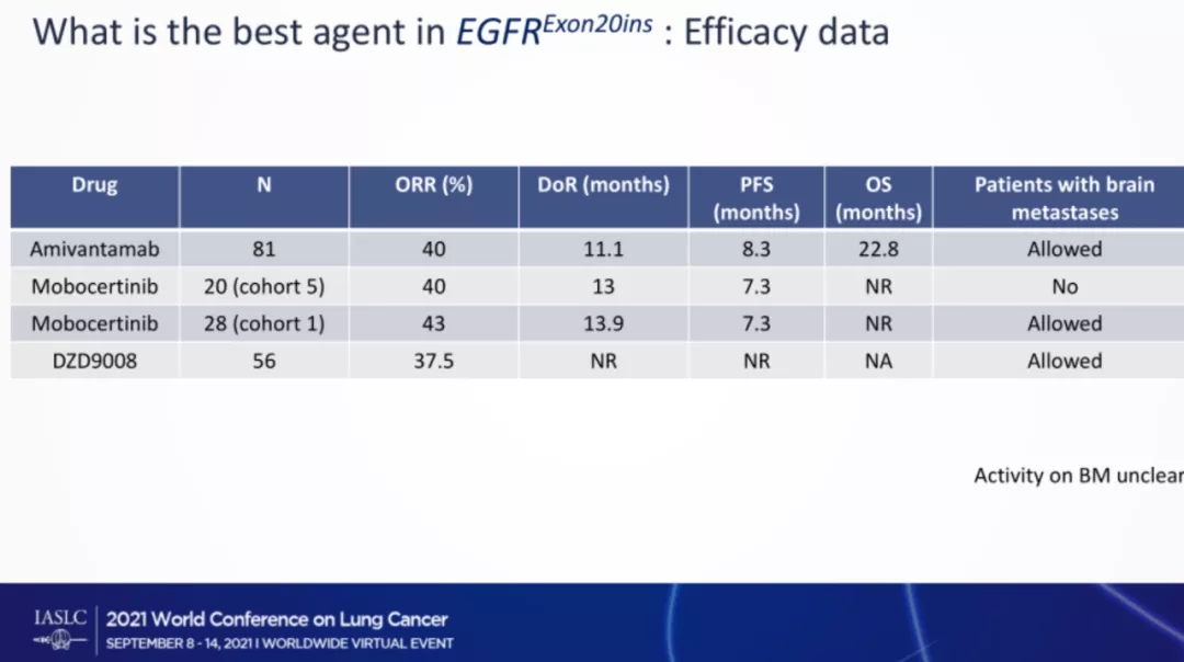 不同药物治疗EGFR ex20ins+非小细胞肺癌的疗效