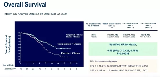 共514例ESCC患者被随机分组,每组257例。在2021年3月22日的预先中期分析中,结果显示: