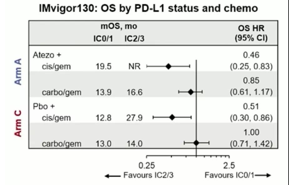 编者按:在III期IMvigor130研究中,单独阿替利珠单抗或联合化疗并不能显著改善患者OS,但在PD-L1 IC2/3人群,以及阿替利珠单抗+顺铂(而非卡铂)治疗人群中有显著的OS改善。这是否提示顺铂对抗PD-L1具有免疫调节作用,二者才是合理的化免联合方案?