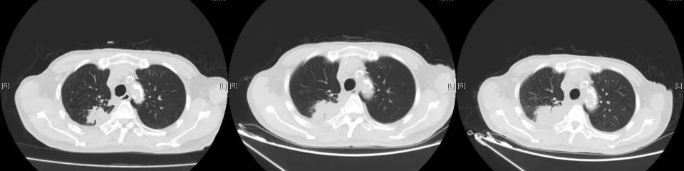 2020年3月复查,病灶再次进展,参考前次基因检测结果,结合临床情况,即开始给予口服吡咯替尼80mg每日一次,2020年4月25因心梗住院治疗。停药约2周。复查示原转移灶稍增大,考虑是否与停药有关,故继续维持吡咯替尼治疗。期间多次复查,病情稳定。局部考虑缓慢进展可能。但综合考虑临床情况,仍继续维持原方案治疗。