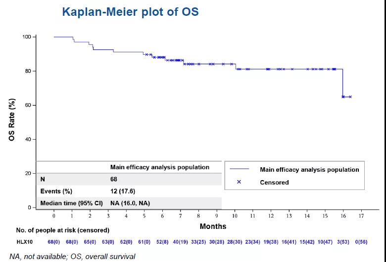 研究中两组患者的中位OS,比既往任何一个mCRC一线治疗的中位OS都要长,在既往OS最长的CALGB/SWOG 80405(标准化疗+西妥昔单抗治疗,左半结肠癌,RAS野生)研究中,患者的中位OS只有约34个月,免疫治疗使MSI-H/dMMR晚期结直肠癌患者显著获益。