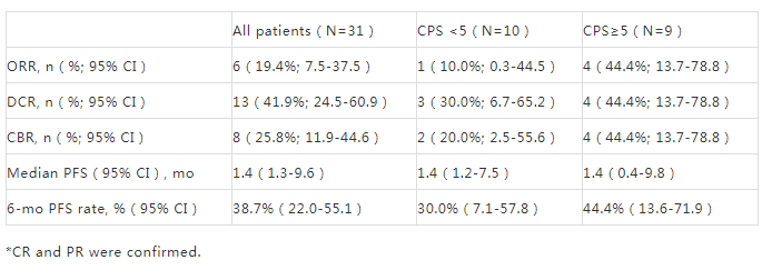 探索性分析显示,PD-L1 CPS≥5的患者有积极反应的趋势。