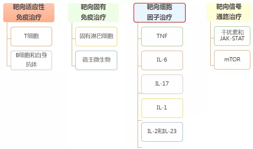 2020年Nat Rev Clin Oncol的一篇文章指出,irAEs的发病机制不同,即使同一个受累器官,其组织病理学表型可能也会存在差异,irAEs的个性化治疗可基于病理学表型。文章推荐了个性化治疗模式:靶向适应性免疫治疗、靶向固有免疫系统(固有淋巴细胞,宿主微生物)、靶向细胞因子治疗和靶向信号通路治疗。