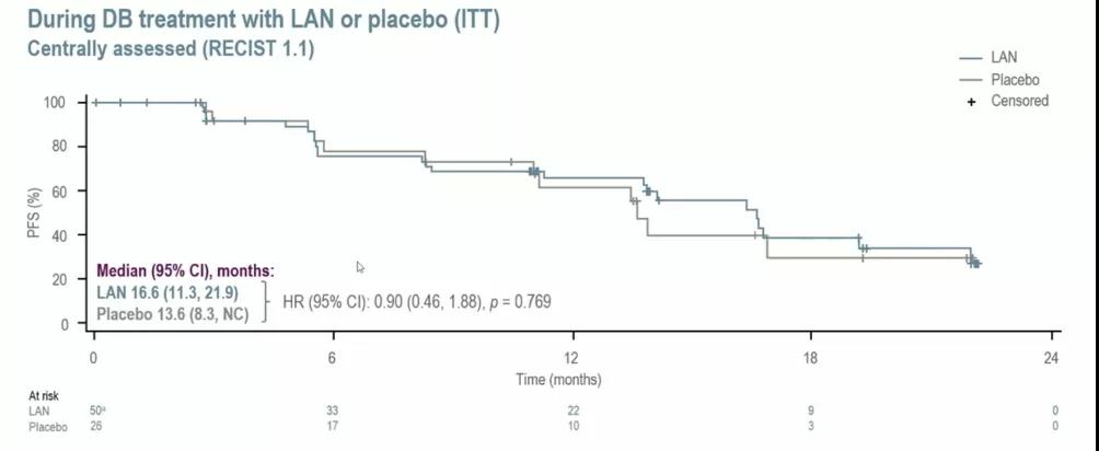 SPINET(EudraCT 2015-004992-62;NCT02683941)是一项关于LAN(120 mg/28天)的3期随机(2 LAN:1 PBO,按TC和AC分层)双盲(DB)研究,且含有一个可选择的开放标签LAN治疗期(OL-LAN)。由于病例招募缓慢,目前已停止入组,正在进行DB阶段的患者可能会过渡到开放标签LAN。主要终点是DB/OL-LAN期LAN组患者(RECIST 1.1)PFS。次要终点包括DB期各治疗组的无进展生存期(PFS)、客观缓解率(ORR)、治疗失败时间(TTF)以及安全性。
