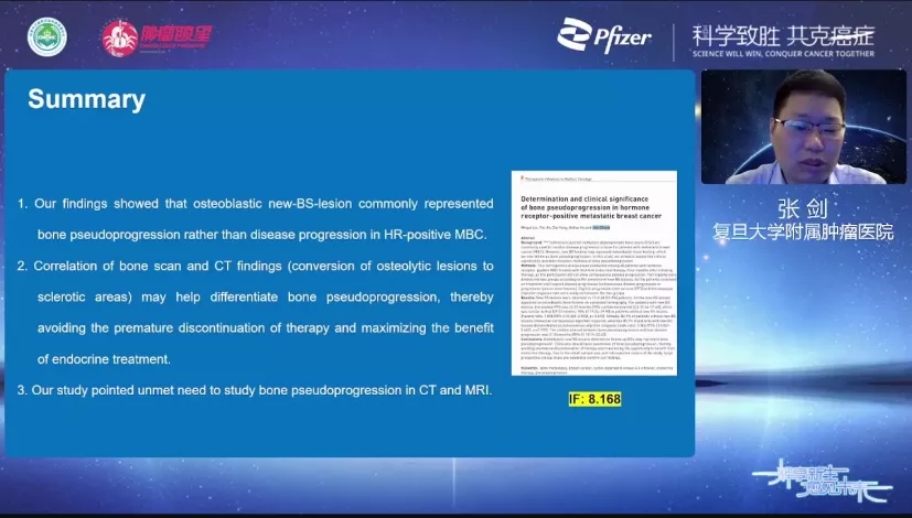 复旦大学附属肿瘤医院张剑教授做了骨假性进展现象与CDK4/6i关系的讲座,提出CDK4/6i治疗中出现的“成骨骨转移征象”可能并不是真正的转移,要避免因此现象而过早的停止CDK4/6i的应用。