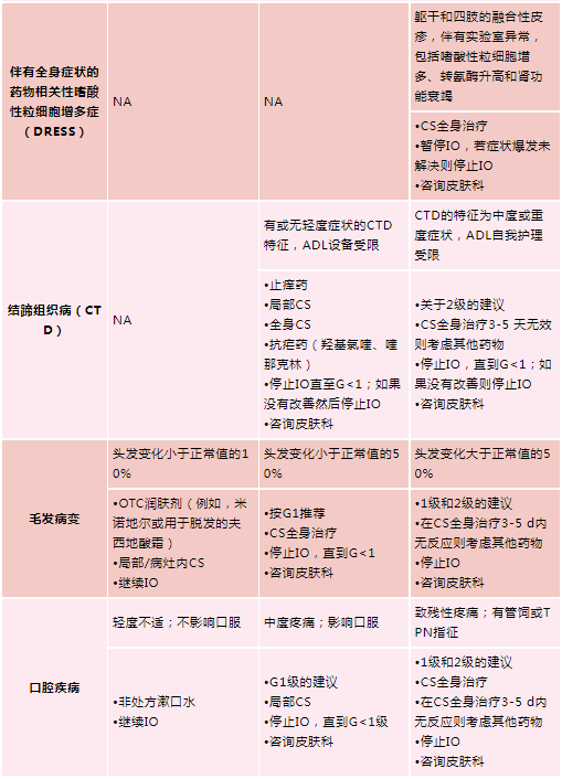 根据不同的斑丘疹cirAEs分级(轻、中、重度),可给予以下不同的处理。