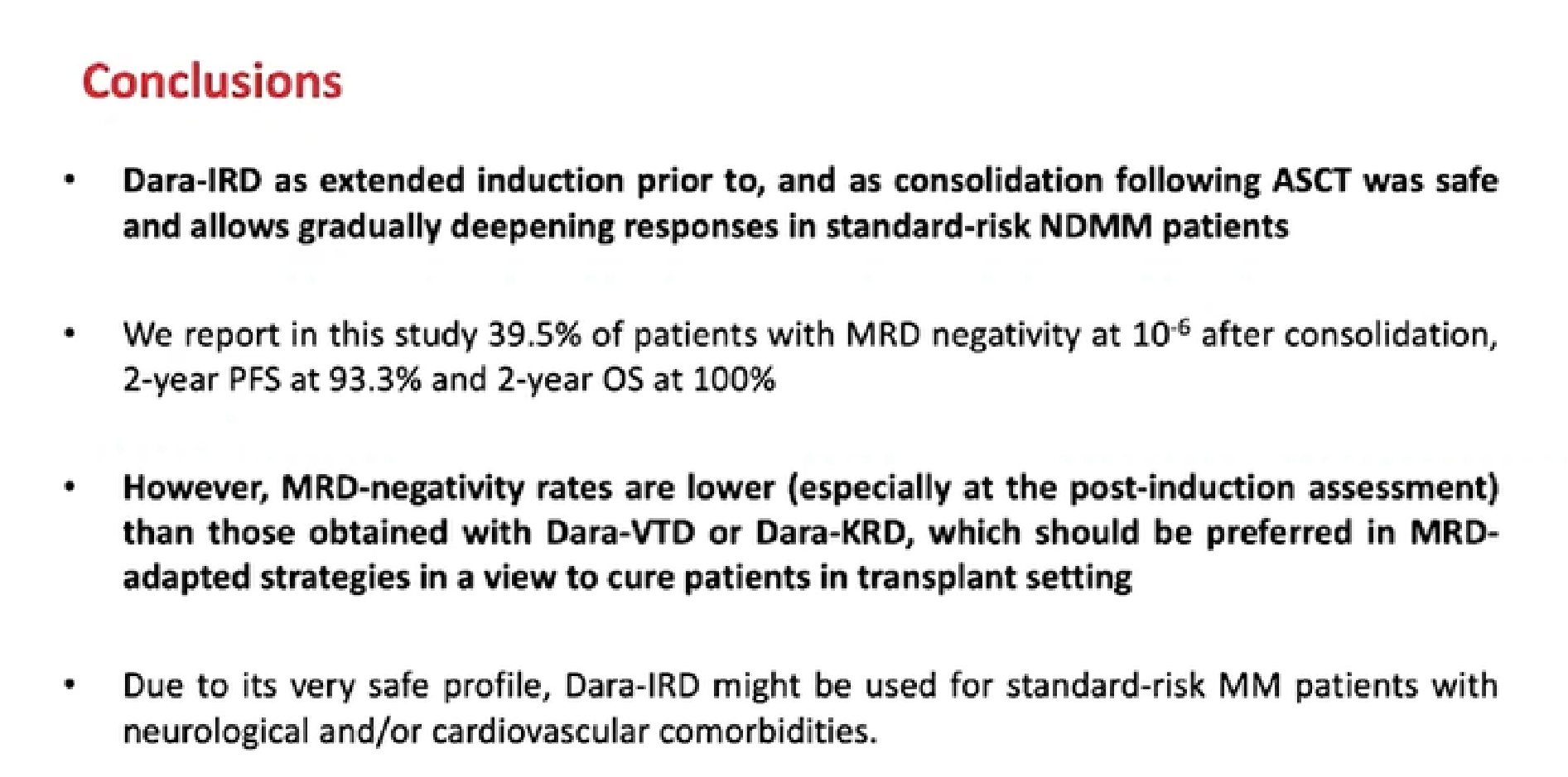 01 DIRD联合方案一线治疗标危、适合移植的新诊断多发性骨髓瘤患者可进一步提高生存