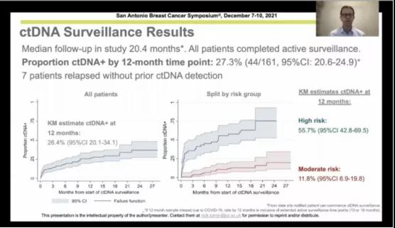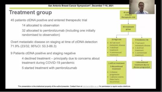 二、该研究的ctDNA检测频次过低,仅为每3~12个月1次的动态ctDNA监测(如果标本由COVID原因导致缺失,可延长到18个月),这样很难即使发现早期的亚临床级别复发。可能正是因为这样,高达72%的患者在ctDNA阳性时检查发现已有转移,从而导致入组使用帕博利珠单抗治疗的患者仅为5例。