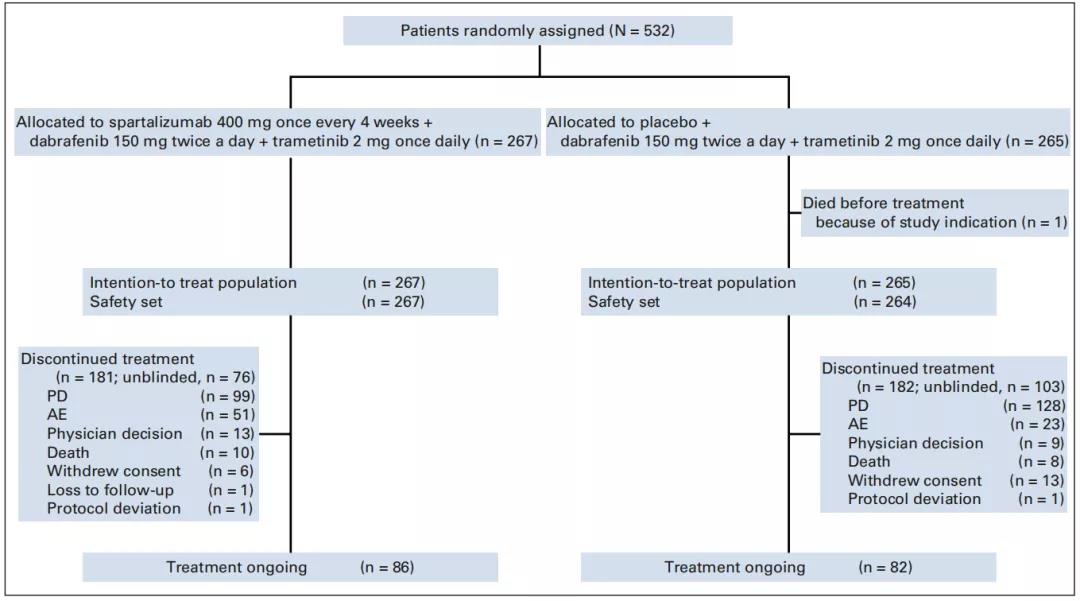Reinhard Dummer,Georgina V. Long , Caroline Robert, et al.Randomized Phase III Trial Evaluating Spartalizumab Plus Dabrafenib and Trametinib for BRAF V600–Mutant Unresectable or Metastatic Melanoma.https://ascopubs.org/doi/full/10.1200/JCO.21.01601