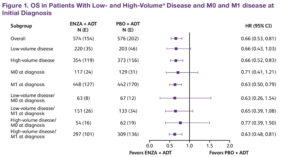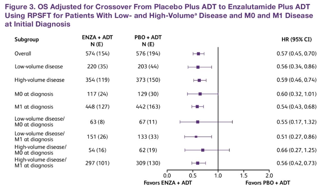 ARCHES研究按疾病负荷、初诊M1或M0进行分层的事后分析