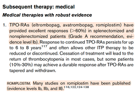 事实上,目前国内外指南对于TPO-RA的推荐地位日渐提升,在《成人原发免疫性血小板症-2018年版》中明确将罗普司亭为代表的TPO-RA推荐位ITP二线治疗的重要选择,另外需要指出的是,2019年ASH中关于ITP指南也明确提出,对于糖皮质激素治疗3个月以上无反应的成人ITP患者,ASH推荐TPO-RA,而非利妥昔单抗。再者,2019年ITP国际共识报告也明确推荐(Ib级,A类推荐)TPO-RA作为ITP二线治疗的关键药物。