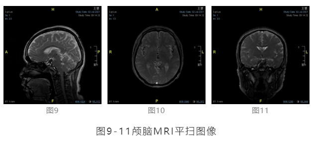 2021.07.02:颅脑MRI平扫:脑内少许缺血灶。(图9、10、11)