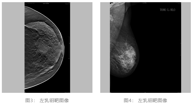 2021.06.30乳腺体层成像:双乳ACR c型。左乳肿块,BI-RADS 4C 类。双乳腺体增生样改变,BI-RADS 2类。(图3、4)