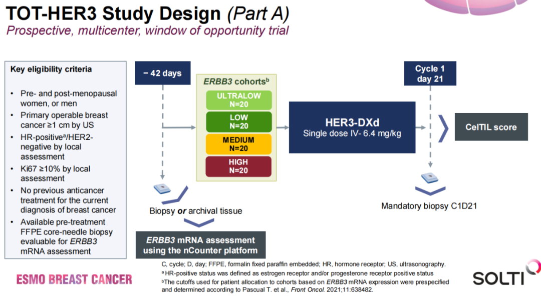 LBA3——SOLTI TOT-HER3机会窗试验:Patritumab deruxtecan(HER3-DXd)治疗早期HR+/HER2-乳腺癌的最终结果