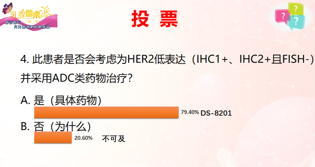 殷咏梅教授:此患者是否会考虑为HER2低表达(IHC1+、IHC2+且FISH-)并采用ADC类药物治疗?