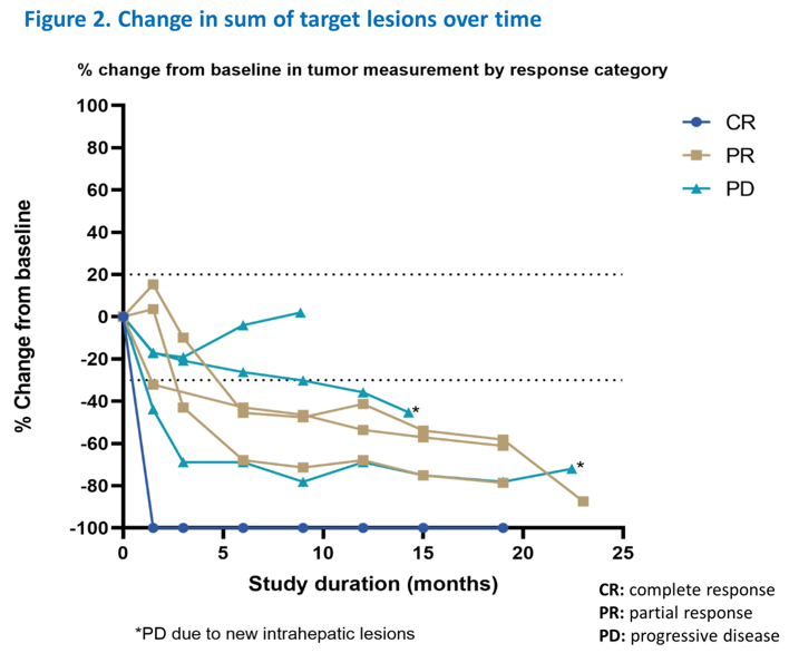 本次ASCO几个研究中,SCANDIUM、CHOPIN研究只纳入仅肝转移患者,其他3个研究可纳入同时肝外转移患者。从疗效看,经过局部治疗的肝转移可获得较好控制率,Tomal研究采用溶瘤病毒肝瘤内注射病灶,部分肝内非注射病灶、肝外病灶亦可获益,这可能与溶瘤病毒的“远隔效应”相关,为肝转移患者的肝内外病灶控制提供了好的基础。