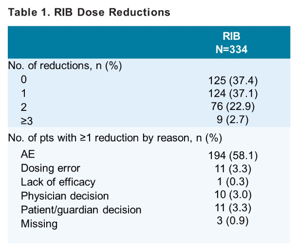 中位随访49.35个月(数据截止时间2021年6月10日),RIB治疗组334名患者中有209名(62.6%)出现了≥1次的RIB减量事件,125名(37.4%)患者未发生减量。