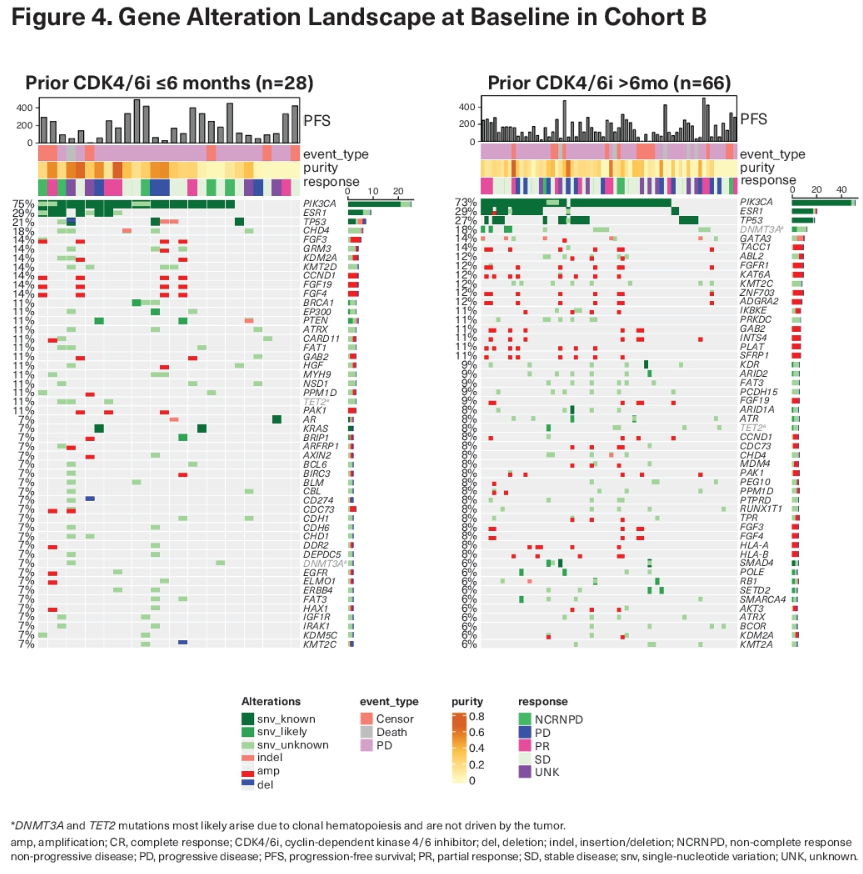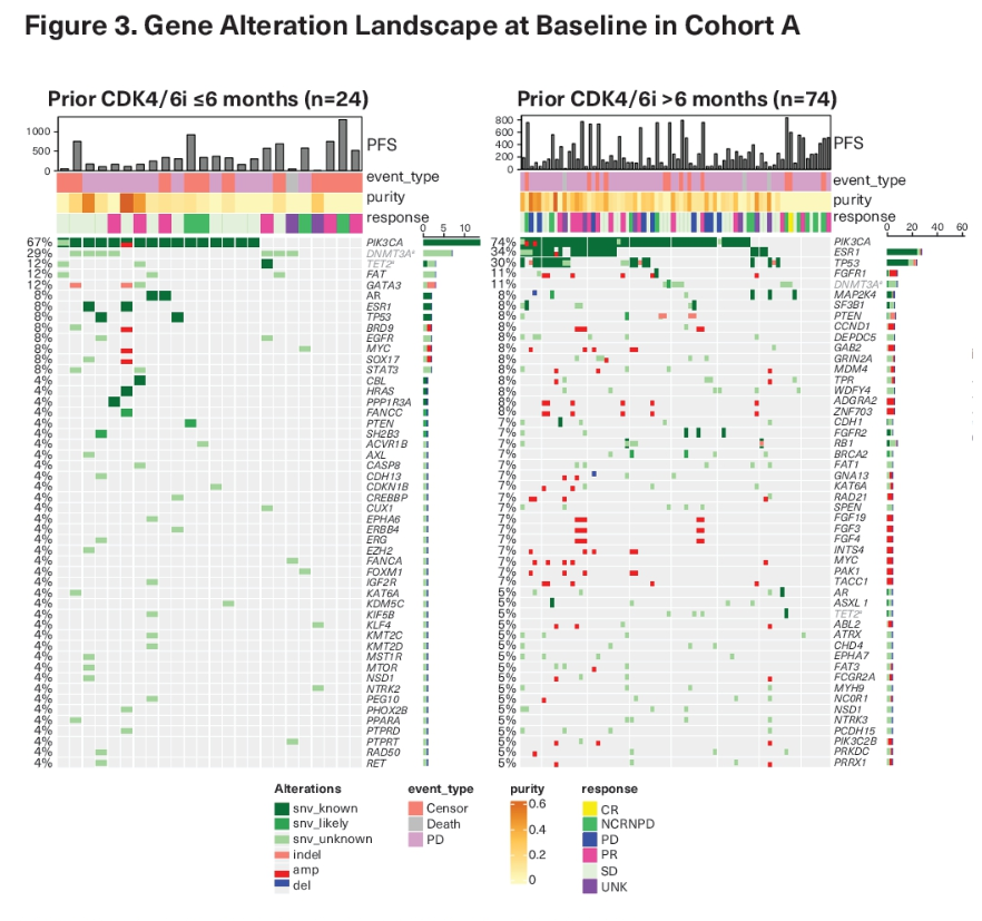BYLieve研究:根据既往CDK4/6抑制剂治疗的持续时间,对Alpelisib联合内分泌治疗HR阳性/HER2阴性、PIK3CA突变的晚期乳腺癌患者的基线生物标志物和无进展生存期的分析