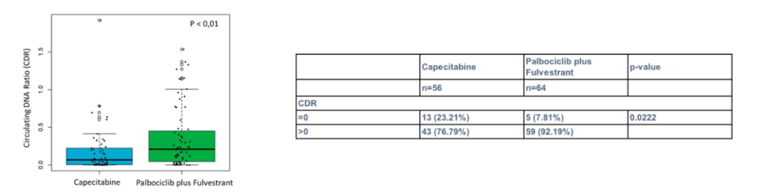 PEAR试验队列2中,比较哌柏西利和氟维司群(PAL+FUL)与卡培他滨(CAPE)的基线和纵向ctDNA生物标志物