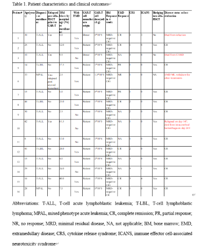 Keyword(s): CAR-T, Cellular therapy, T cell acute lymphoblastic leukemia