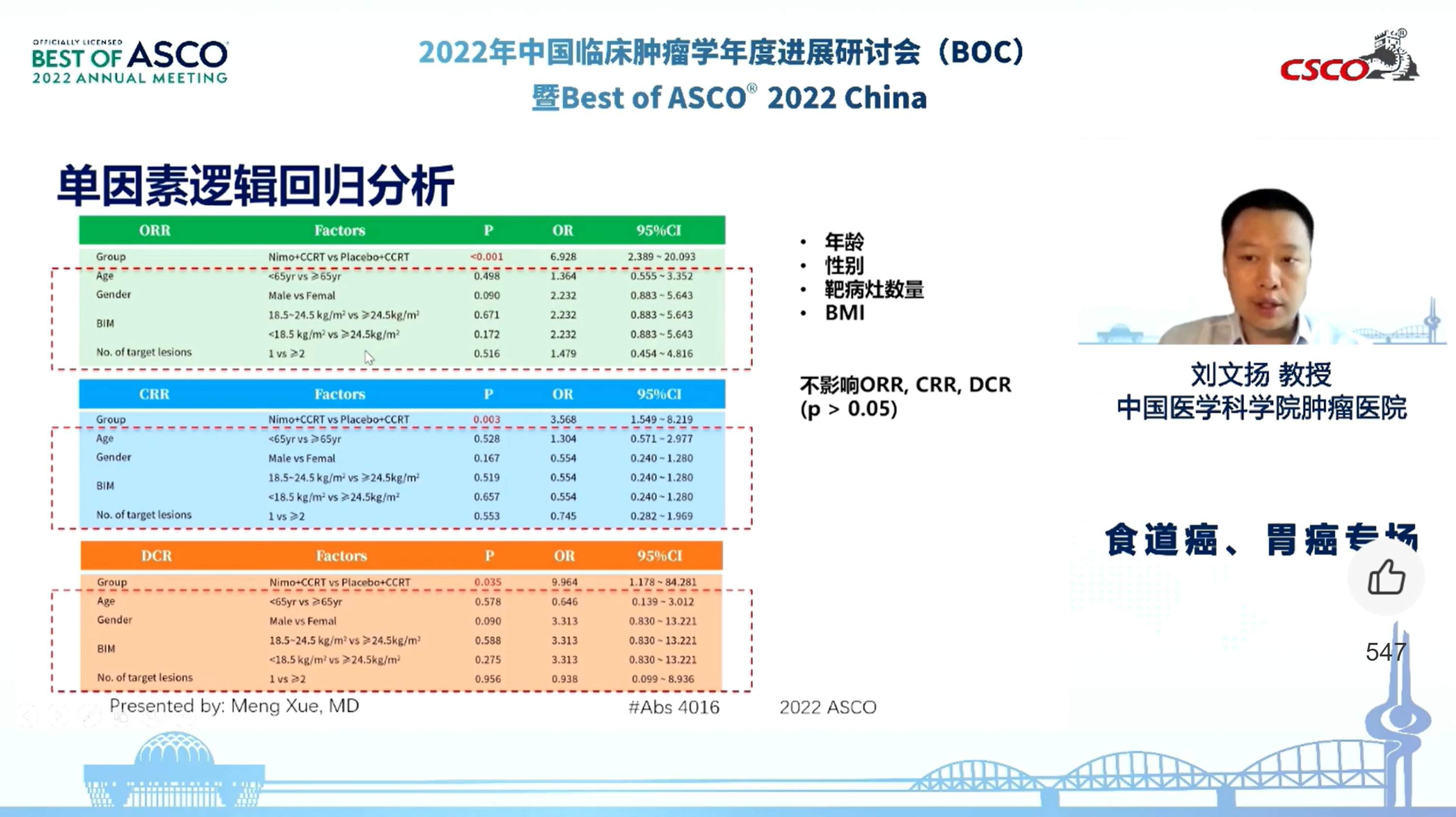 食道癌、胃癌专场由李进教授、王绿化教授、沈琳教授、邢力刚教授主持,并与其他专家围绕相关研究和话题展开讨论。