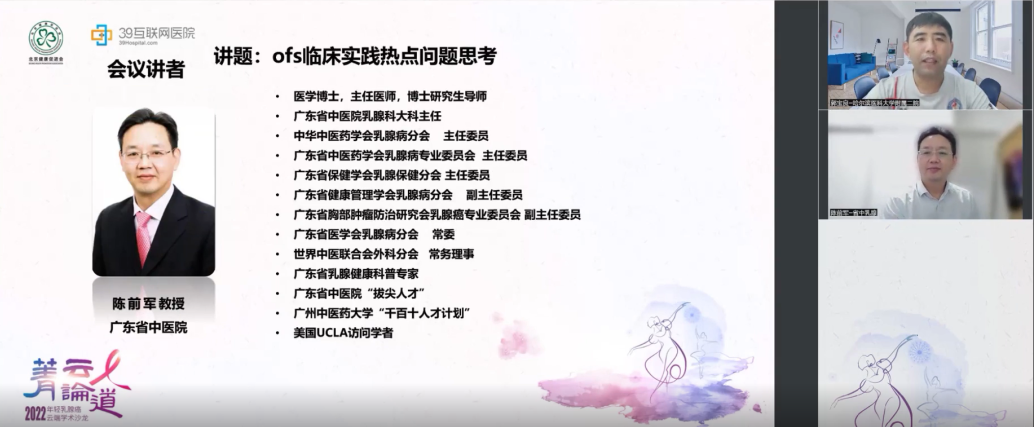 首部中国年轻乳腺癌诊疗专家共识已正式发布,激发了学术界对年轻乳腺癌患者诊疗新一轮的热烈探讨,中国乳腺癌发病年龄远低于国际平均水平,关注年轻乳腺癌患者健康势在必行。近期,年轻乳腺癌云端学术沙龙成功举办。本次会议特邀福建省立医院叶松青教授、复旦大学附属肿瘤医院张剑教授担任主席,与许多国内知名学术专家汇聚云端,就乳腺癌卵巢功能抑制中的热点、难点问题激烈探讨,提出诸多新颖独到的观点。