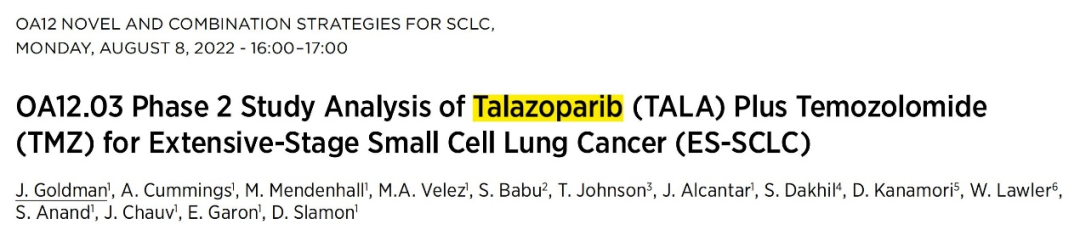 Talazoparib联合替莫唑胺二线治疗广泛期小细胞肺癌患者