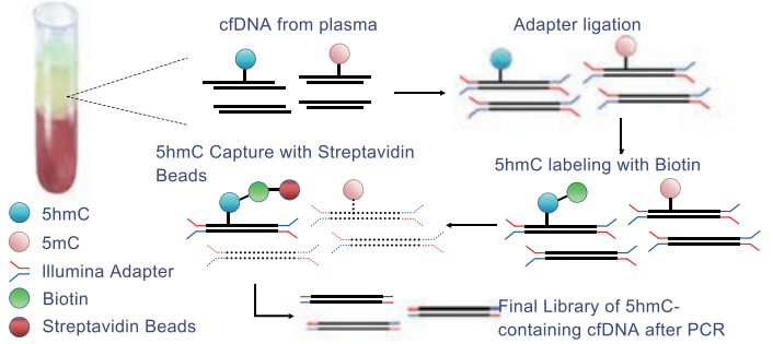 图1. 从外周血浆中提取细胞游离DNA并捕获5hmc
