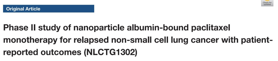 该研究达到主要研究终点,白蛋白结合型紫杉醇后线单药治疗非小细胞肺癌患者具有较好的耐受性及抗肿瘤活性。
