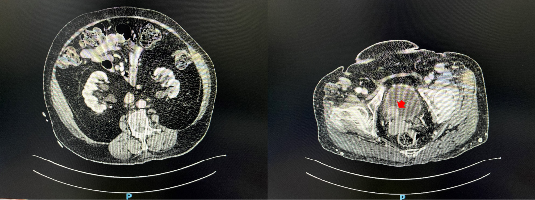 患者(我院首次住院)1月余前因“间断尿频、尿急、尿痛,检查发现膀胱占位”于外院就诊。后于外院行TURBt术,术中因广基肿瘤无法电切切除,未完全切除肿瘤。术后病理经我院会诊提示膀胱尿路上皮癌,高级别,脉管内可见癌栓,侵及固有膜达固有肌层(Ki-67:70%+;P53:散在+;CK20:+;CK7:+)。