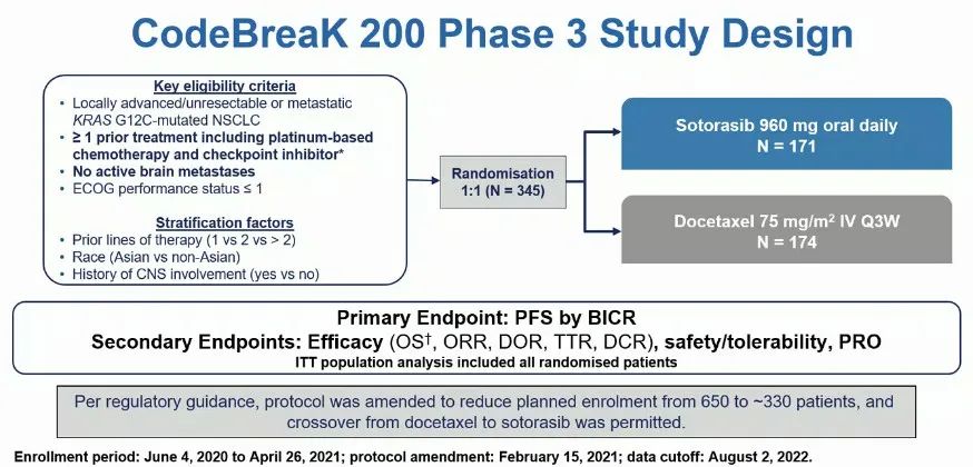 ESMO 2022丨KRAS G12C抑制剂赛道突围:III期CodeBreaK 200试验显示PFS获益