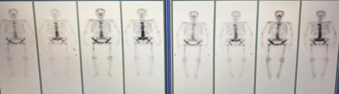 2021年4月7日骨扫描:全身多发骨质代谢异常,考虑多发骨转移。