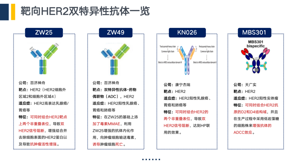 图4.靶向HER2的双特异性抗体一览(ZW29、ZW49、KN026及MBS301)