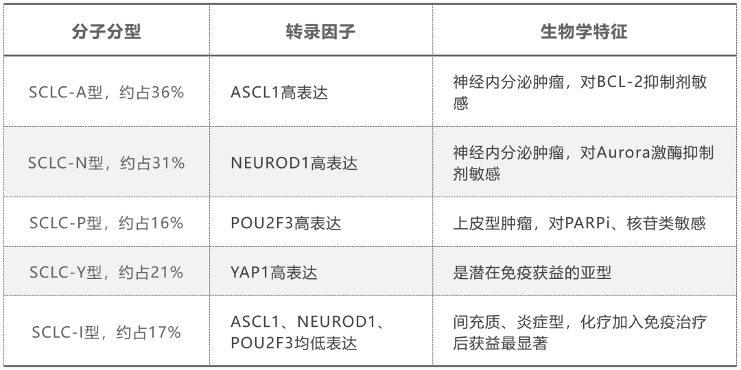 ①SCLC-I型、SCLC-Y型可从免疫治疗获益,但该亚型总体占比不高;