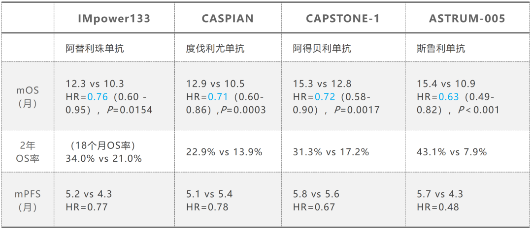 ③CASPIAN研究事后分析显示,长期生存(LTS)患者较ITT人群接受免疫联合化疗ORR和2年PFS率更高。换言之,ORR、2年PFS率可能与长期生存率存在相关性。