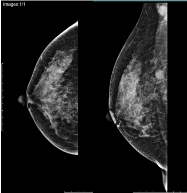 2021年6月20日乳房钼靶:右乳上方深部见直径12mm结节,边界欠清,右侧腋下见肿大淋巴结影。