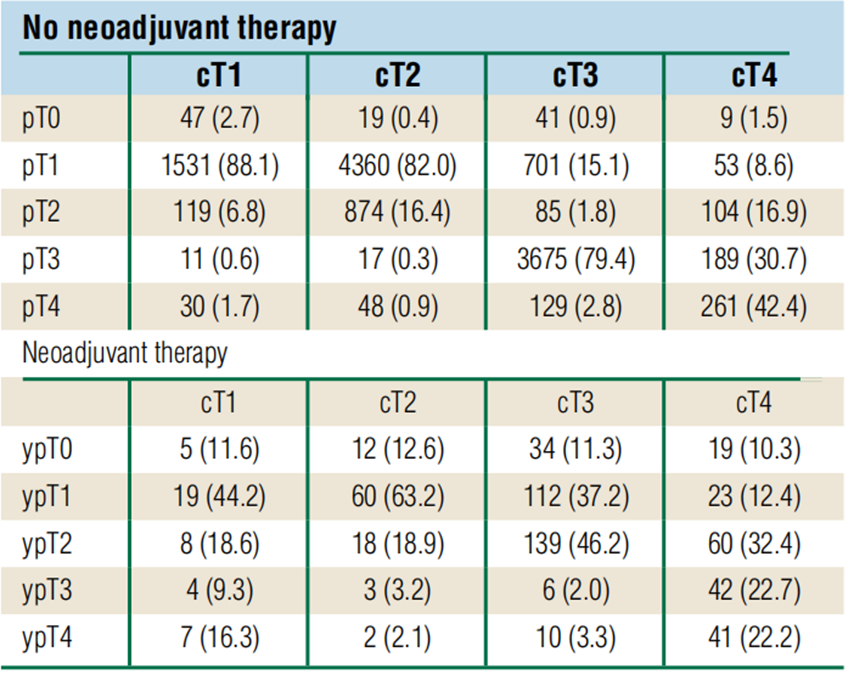 表2接受新辅助治疗的男性非转移性浸润性乳腺癌患者的临床和病理肿瘤分期