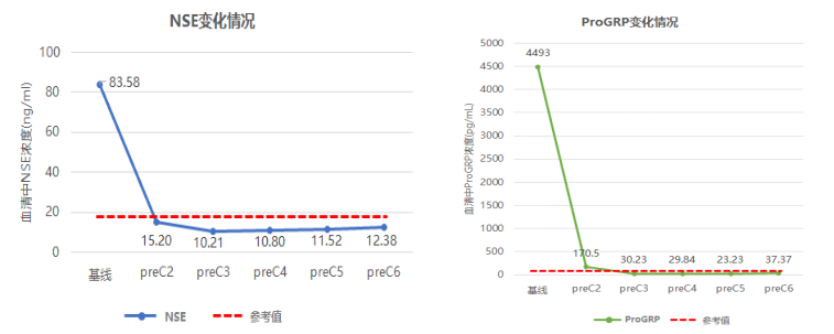 肿瘤标志物:NSE 83.58ng/mL,ProGRP 4493 pg/mL。