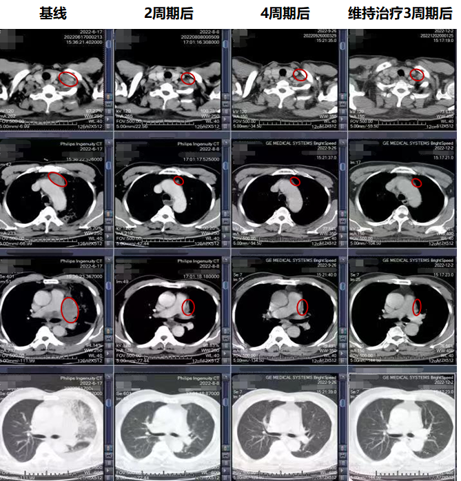 2周期后PR,4周期后接近CR,维持治疗3周期后PD。
