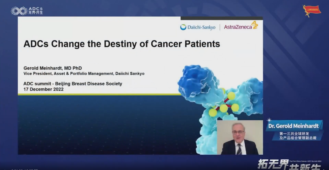 第一三共全球研发及产品组合管理副总裁Gerold Meinhardt博士介绍了T-DXd的DESTINY系列研究概况。这些研究使得T-DXd获得了美国FDA关于乳腺癌、胃癌和肺癌的相应适应证。相信随着更多研究数据的公布,以T-DXd为代表的新一代ADC药物将有更多的适应症,惠及更多的癌症患者。
