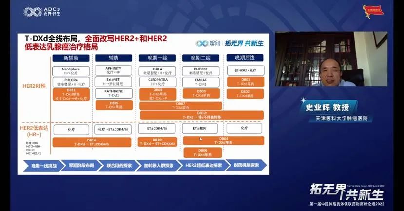史业辉教授表示,HER2阳性乳腺癌治疗格局不断突破,但仍存在许多未满足的临床需求,新一代ADC药物T-DXd独特的药物设计,为临床实践带来新的突破。DESTINY系列研究从晚期到前线逐步破局HER2阳性乳腺癌治疗模式,其中DB-03研究显示BICR评估的PFS可以达到28.8个月,是T-DM1的四倍,而且DB03入组患者人群特征更符合当下临床治疗现状;同时,T-DXd对脑转移人群获益显著,未来可期。DESTINY系列研究重塑了HER2低表达乳腺癌的治疗格局,DB-04研究显示T-DXd在HER2低表达人群中获益显著(无论HR状态如何)。最后,DESTINY系列研究正在全线布局,挑战晚期一线治疗以及早期新辅助及辅助治疗;而且也在探索联合用药、脑转移患者和HER2超低表达人群治疗模式,同时还在探索耐药机制,期待未来其能全面改写HER2+和HER2低表达乳腺癌的治疗格局。