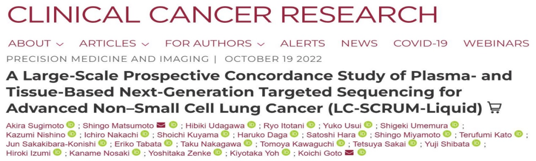 研究目的:本研究基于较大样本量的前瞻性队列,评估了循环游离DNA(cf-DNA)与组织的驱动基因检测结果的一致性。