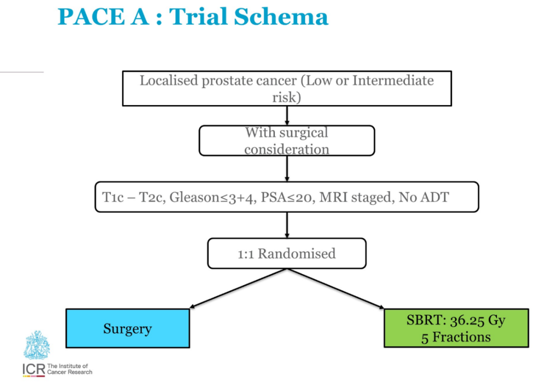 PACE-A:一项立体定向放疗(SBRT)对比手术治疗局限性前列腺癌(LPCa)的国际3期随机对照试验(RCT)—主要终点分析