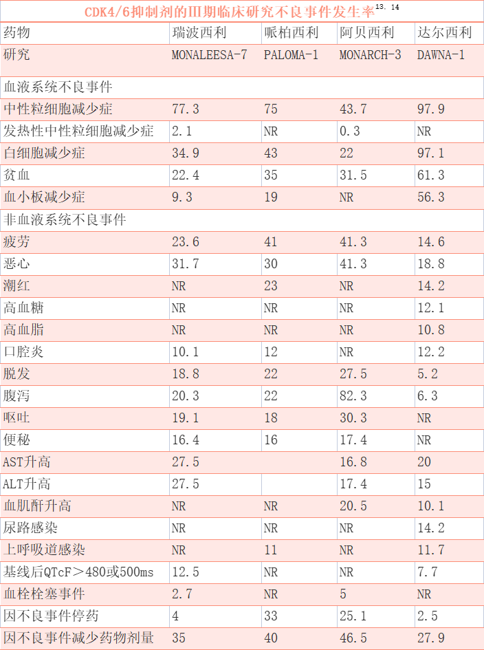 由于CDK4/6抑制剂药物存在上述不良反应的差异,对肝肾功能、心脏功能等带来的影响不同,特殊人群用药应根据药物说明书执行3,15。