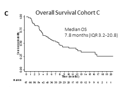 在队列A、B和C中,分别有32例(19.2%)、25例(17.9%)和15例(22.4%)患者在gilteritinib后接受了异基因造血干细胞移植(Allo-HSCT),CRc分别为21例(65.6%)、17例(68.0%)和11例(73.3%)