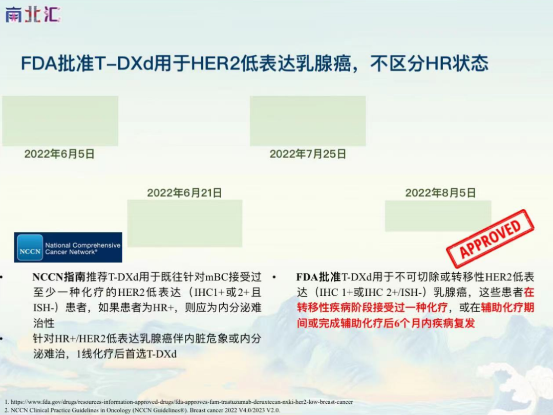 本届南北汇我的讲题为《德曲妥珠单抗在进展期激素受体阳性HER2低表达的应用序位》。2022年基于Destiny-Breast 04研究的突破性成果,美国FDA批准了其应用于HER2低表达领域的适应症。在大家期盼中,德曲妥珠单抗终于在我国获批上市,逐渐实现可及。那么其在HER2低表达领域的临床实践中如何应用,目前成为了最重要的新话题之一。