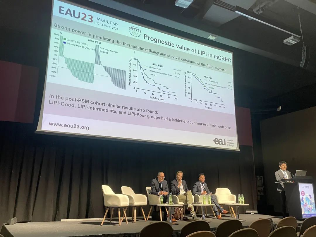 第38届欧洲泌尿外科学会年会(EAU23)于2023年3月10日至13日在世界时尚之都意大利米兰召开。EAU年会是欧洲乃至全球最受关注的泌尿外科会议之一,每年吸引全球1万5千余名泌尿外科专家参会。本次大会上,四川大学华西医院张兴明医生(第一作者为华西医院王志鹏医生)代表课题组汇报的一项研究表明,治疗前的肺免疫预后指数(LIPI)对于转移性激素敏感性前列腺癌(mHSPC)和去势抵抗性前列腺癌(mCRPC)患者具有很好的预后价值,有望成为前列腺癌的生物标志物。